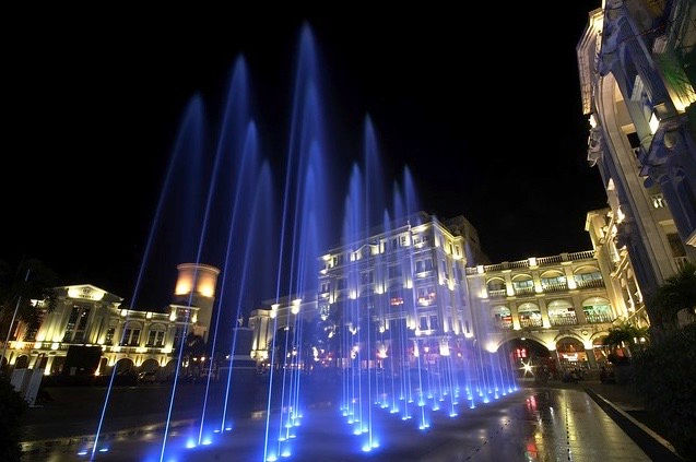 This hotel exudes old-world European charm, with its Spanish-style architecture becoming truly enchanting at night, as classical buildings light up and the lively dancing fountain entertains visitors.